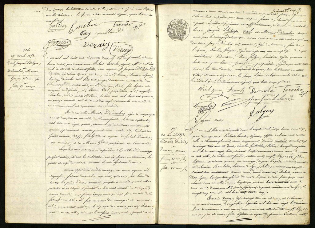 La paléographie est une mission du généalogiste professionnel : il s’agit de transcrire des textes anciens ligne par ligne sans changer l’orthographe de l’époque. (Seuls les accents et le découpage des mots sont ajoutés pour faciliter la lecture.) Cette transcription est faite ligne par ligne avec l’orthographe du XIXe siècle.